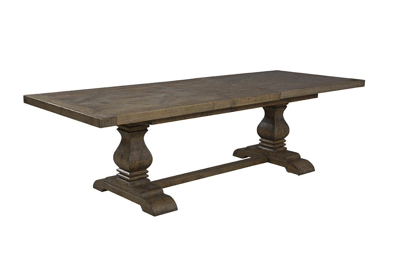 In response to fluctuating tariffs, this item may be sourced from an alternate manufacturing location, and some variation from previous production is possible. For years you’ve asked for it, so here it is! Based on our best selling Manor House table, this beauty has been enhanced by the addition of a self storing butterfly leaf, making it perfect for large gatherings. The reclaimed Pine top features striking geometric inlays, and is made family friendly by the application of a clear coat finish.