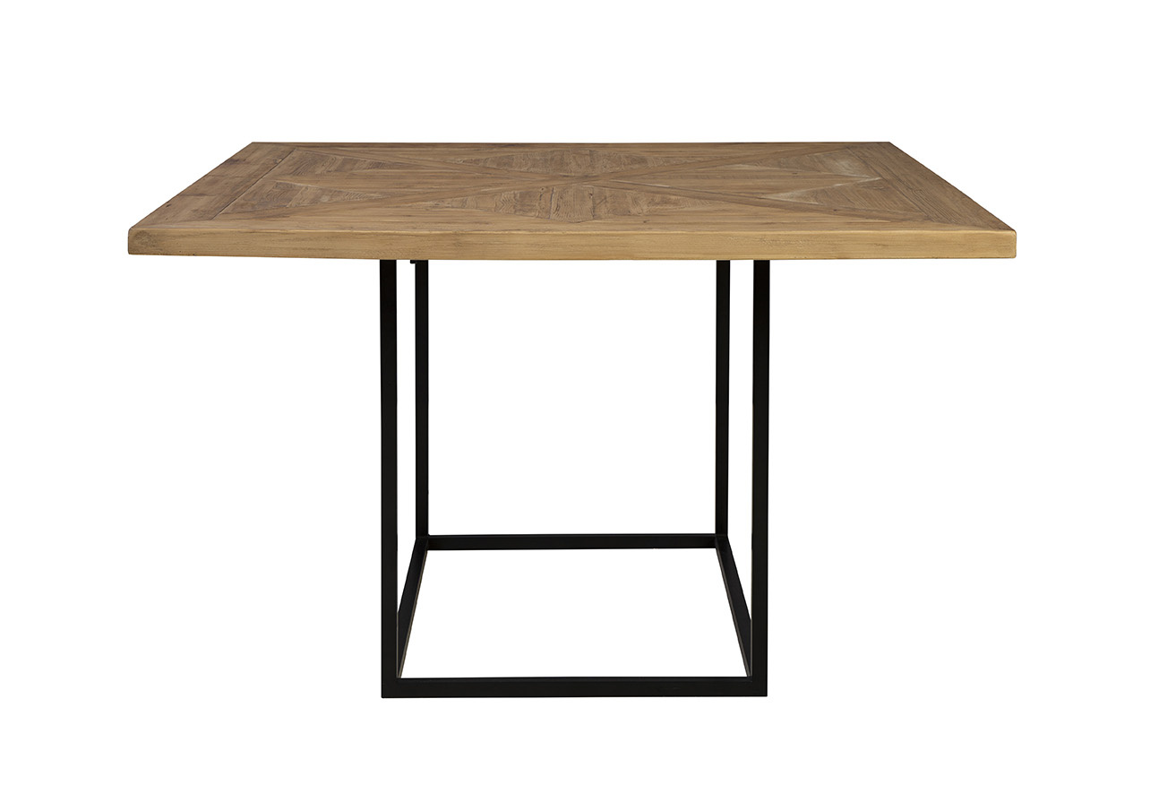 The Turners Dining Table offers a simple and minimalistic design with an industrial edge. Its natural wood square top features a subtle geometric inlay, adding a touch of detail without overpowering its clean lines. Supported by a sturdy square metal base, this table is perfect for those seeking a functional and understated piece with a modern, industrial feel.