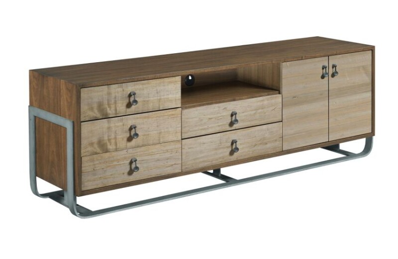 Panorama TV console is the perfect contemporary unit for any living area in your home. Shaped metal base with walnut framed end panels and ambrosia maple drawer and door fronts adds to the character and strength of the overall contemporary feel.