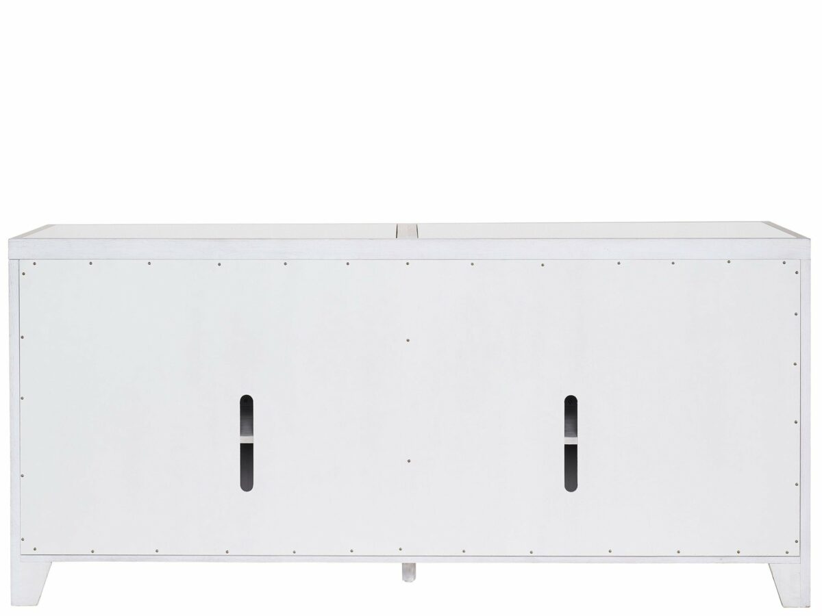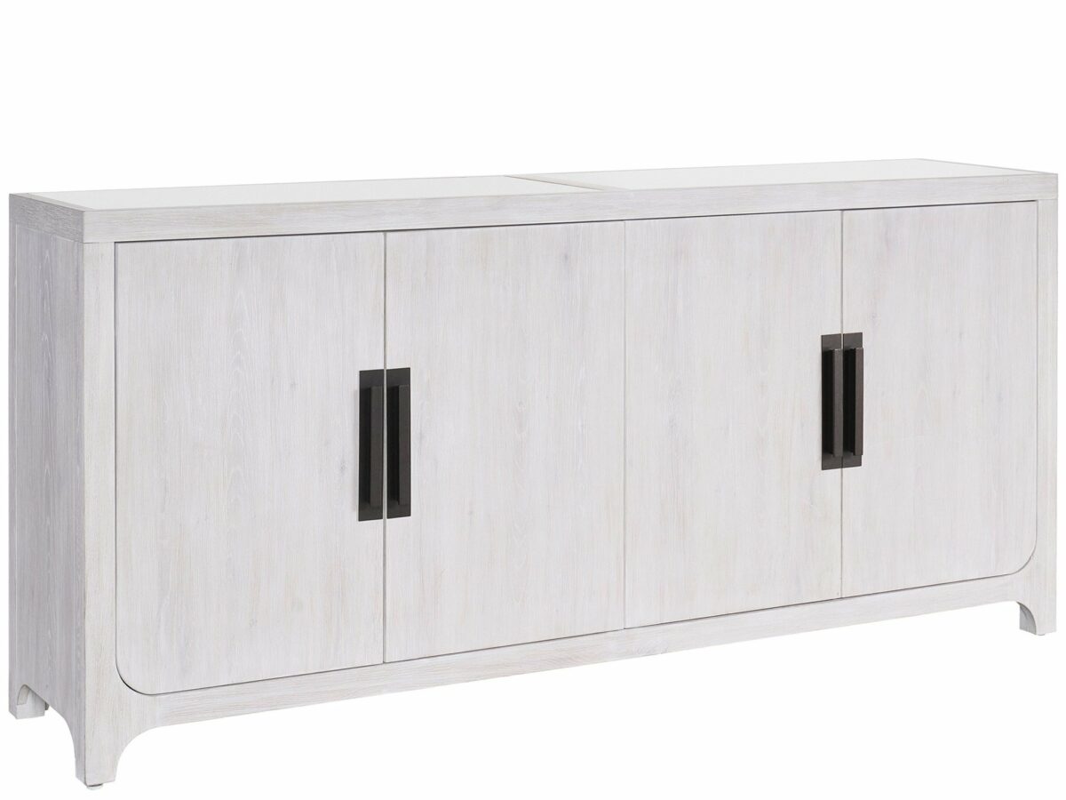 Chic and sophisticated, the Blair Credenza is a divine storage piece with an inset stone top, 4 doors, sleek metal hardware and a cool white finish.
