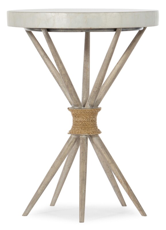 With a modern yet casual style, the Armani Accent Table is an eclectic mix of natural materials Beech Solid Wood, Capiz Shell and rope, evoking a place of refuge and retreat. The calming tonal Buff Almond finish is lime washed with subtle texture accented by jute rope, and the table top is covered in Capiz Shell.