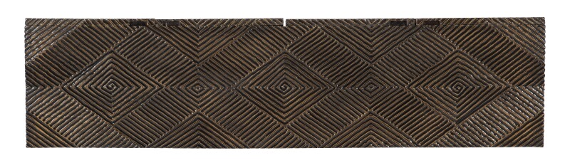 Transcending timeless and modern aesthetics, the Marcellus Credenza marries a classic carved groove diamond motif on the door fronts with an earthy dark brown color scheme accented with the subtle sparkle of gold brass foil. Crafted of Mango Wood, there’s one removable shelf behind each pair of doors, along with a ventilated back panel and wire management holes in the back panel.