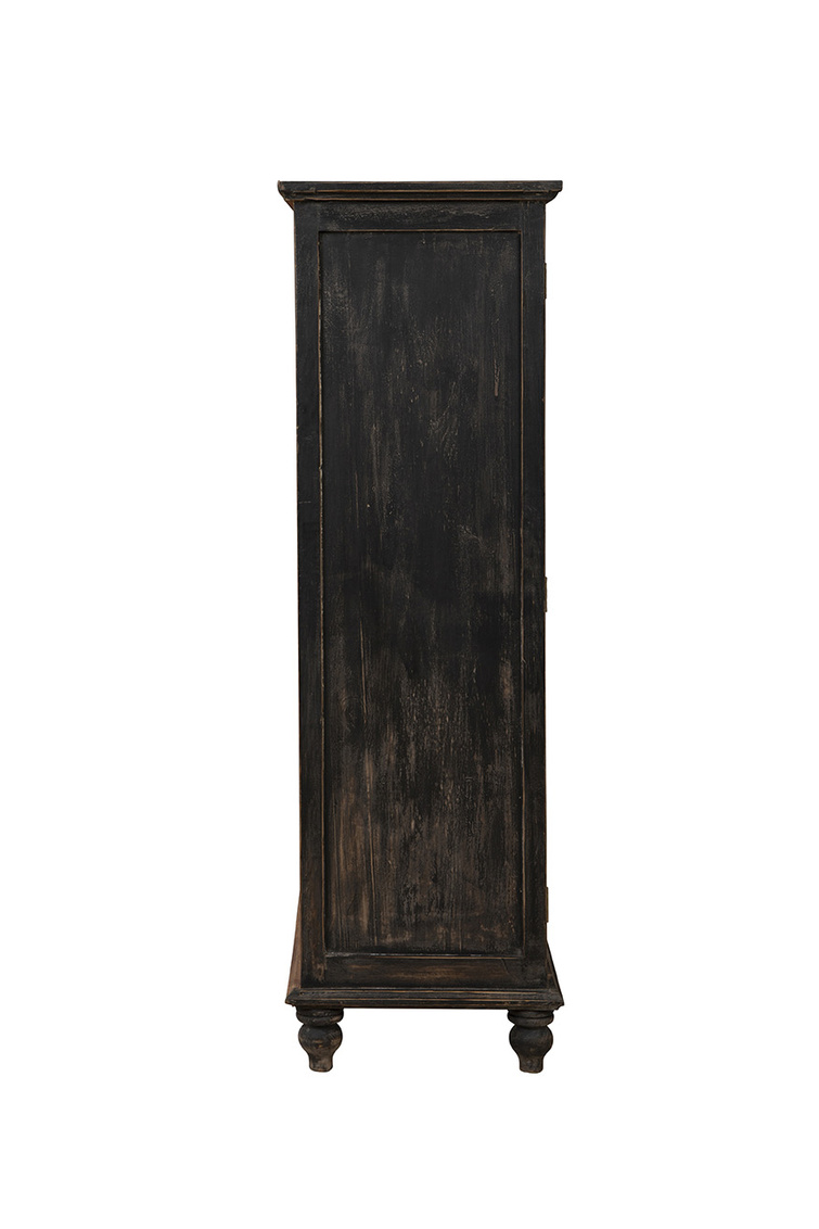 **Final Sale – All Items are sold as is, no returns unless damaged upon receipt. Introducing the Nagle Cabinet, a tall storage solution expertly crafted from solid wood. With a dark wood finish throughout the frame juxtaposed against striking white distressed accents on its large doors, this cabinet demands attention in any room. Its interior features a lighter natural wood tone, enhancing the vintage charm of the distressed exterior. Make a statement with the Nagle Cabinet, a distinctive piece that seamlessly blends modern functionality with timeless aesthetic appeal.