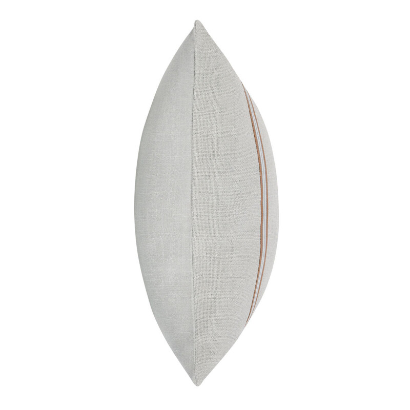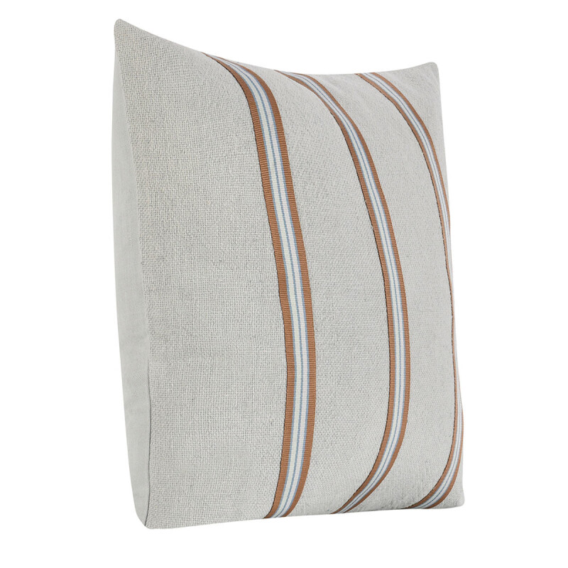Introduce the timeless appeal of stripes into any space with this handsome throw pillow accented with three woven tape appliques atop a cotton linen blend base.
