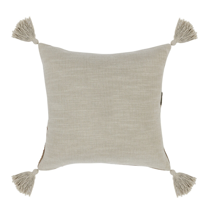 Hand-applied embroidery and fabric pieces, create an evocative pillow rife with visual and textural interest. Contrasting pieces of cotton, Linen, and leather give this piece a casual luxury that suits any organic design style.Leather is a natural material, and subtle variations in color and texture are part of its unique character.