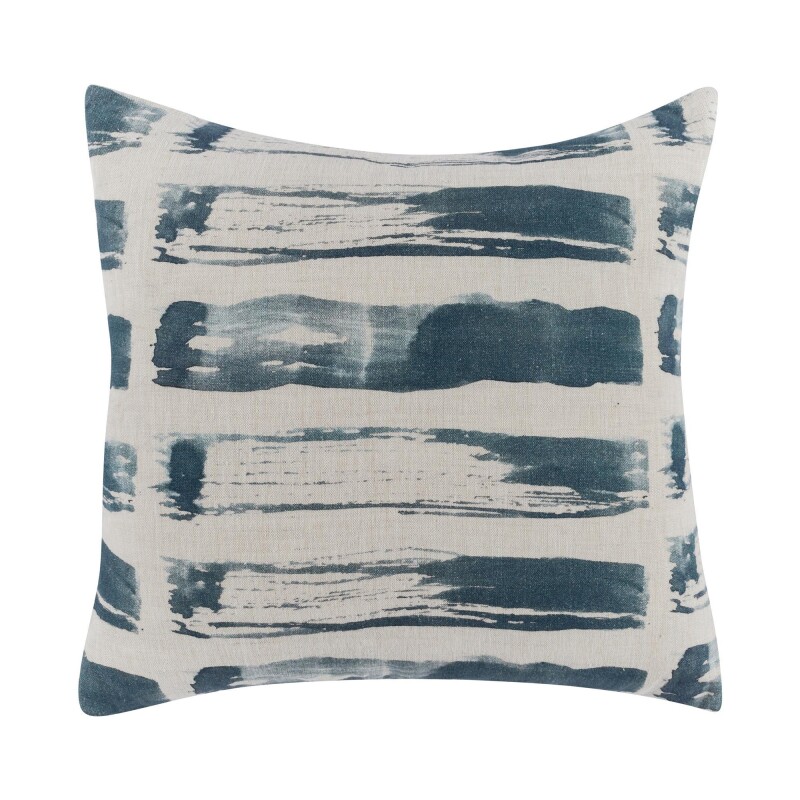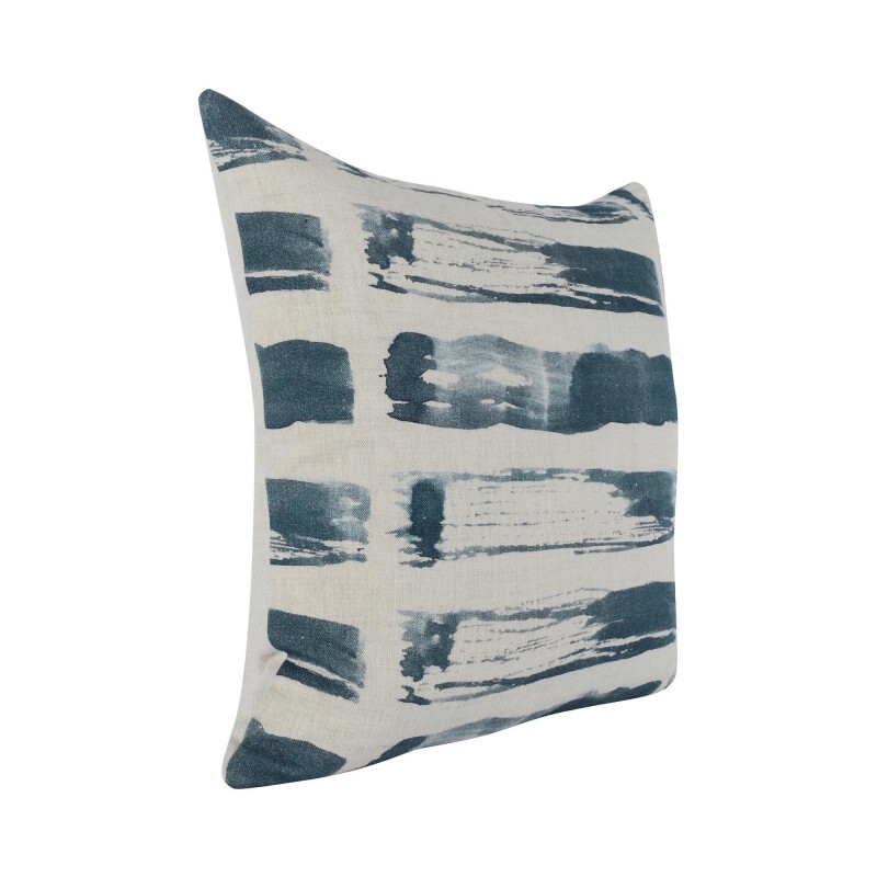 Hand-painted stripes lend this design an artful, sophisticated appeal. The 100% linen fabric enhances the texture, while the distressed paint strokes add depth and character. A hidden zipper and a luxurious feather-and-down fill bring both style and comfort to this plush pillow.