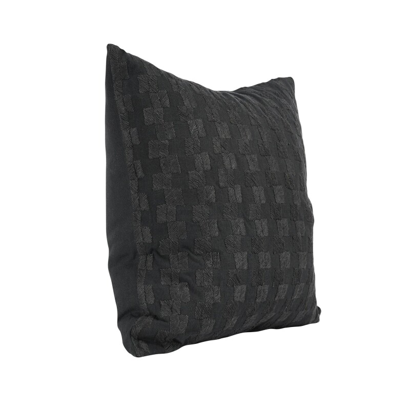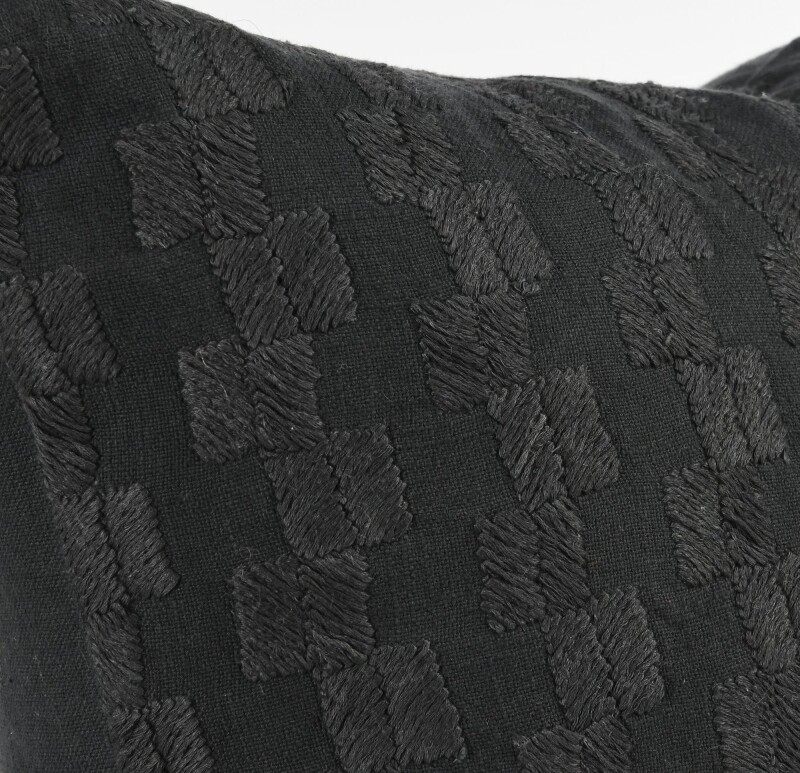 Globally inspired motifs, our design includes hand embroidery in deep colors to tell the story of the artisans that made it. The tonal graphic front of the pillow makes this style have an easy appeal. A soft feather and down blend insert gives this pillow a lavish supportive feel that makes it as comfortable as it is beautiful.
