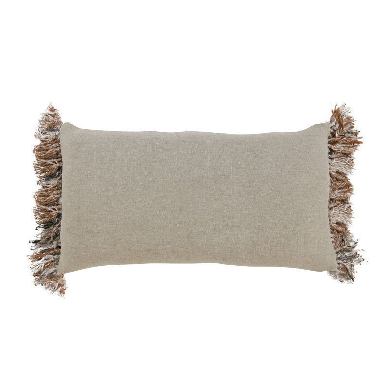 Ground your design in earthy hues and rich texture with this pillow featuring knotted fringe, a heavy weave, and delicate embroidery. A cotton Linen blend ensures a soft hand feel while embroidery adds a natural, artisanal vibe.