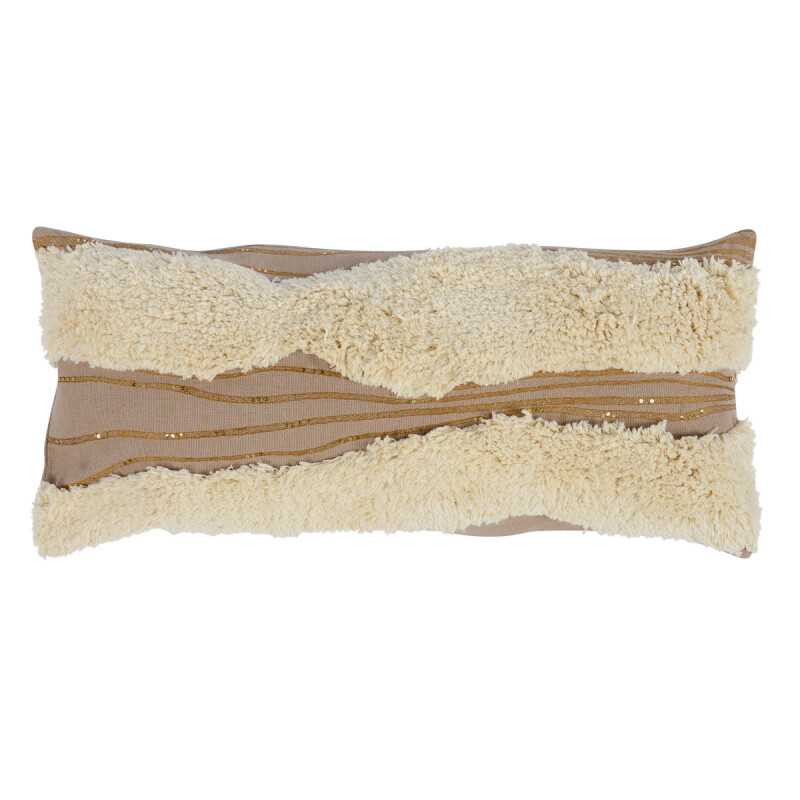 Hand tufted with slight metallic features gives this Moroccan inspired design the extra glam it needs to be a style statement. A soft feather and down blend insert gives this pillow a lavish supportive feel that makes this pillow as comfortable as it is beautiful.