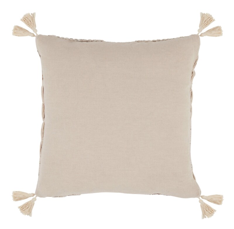 Airy, neutral tones and a handsome block design give this piece an organic-modern appeal. Handcrafted with woven mélange yarns and embroidery, this pillow both grounds and lightens any decor. Rich texture creates an invitingly soft hand feel.