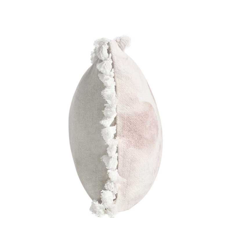 Framed with tiny tassels, this charming pillow features warm, rosy tones that bleed into hues of peach and gray. This digitally printed, watercolor design brings an evocative touch to this otherwise traditional-looking piece.