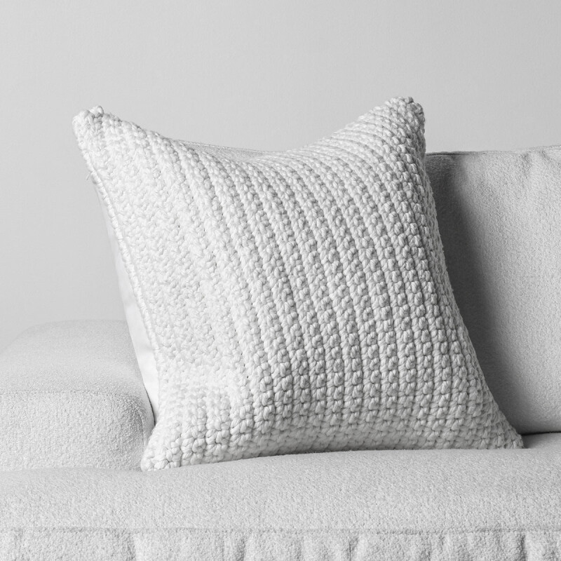 Give your outdoor space a statement of coziness with this pillow featuring a hand knitted pattern. Treated with an outdoor finish to resist fading and moisture, this durable piece makes a classic statement in any setting. Made with polyester fill, this pillow can easily be cleaned by dusting or using water and laying out to dry in sunlight.