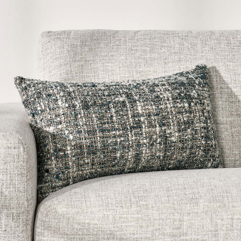 New and recycled fibers weave together to create a textured design with inviting appeal. The woven pattern makes this pillow ideal for mixing and matching with other colors and patterns.