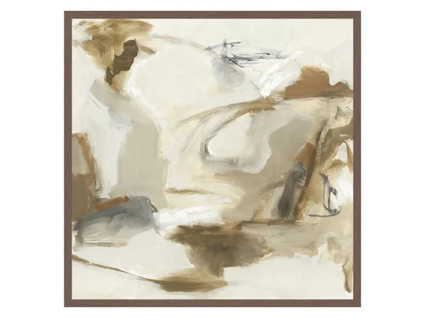 With its abstract forms and earthy palette, this work by Buddy Whitlock delivers a balance of serenity and visual intrigue. The thick and thin walnut shadow frame adds a refined touch to its timeless design.