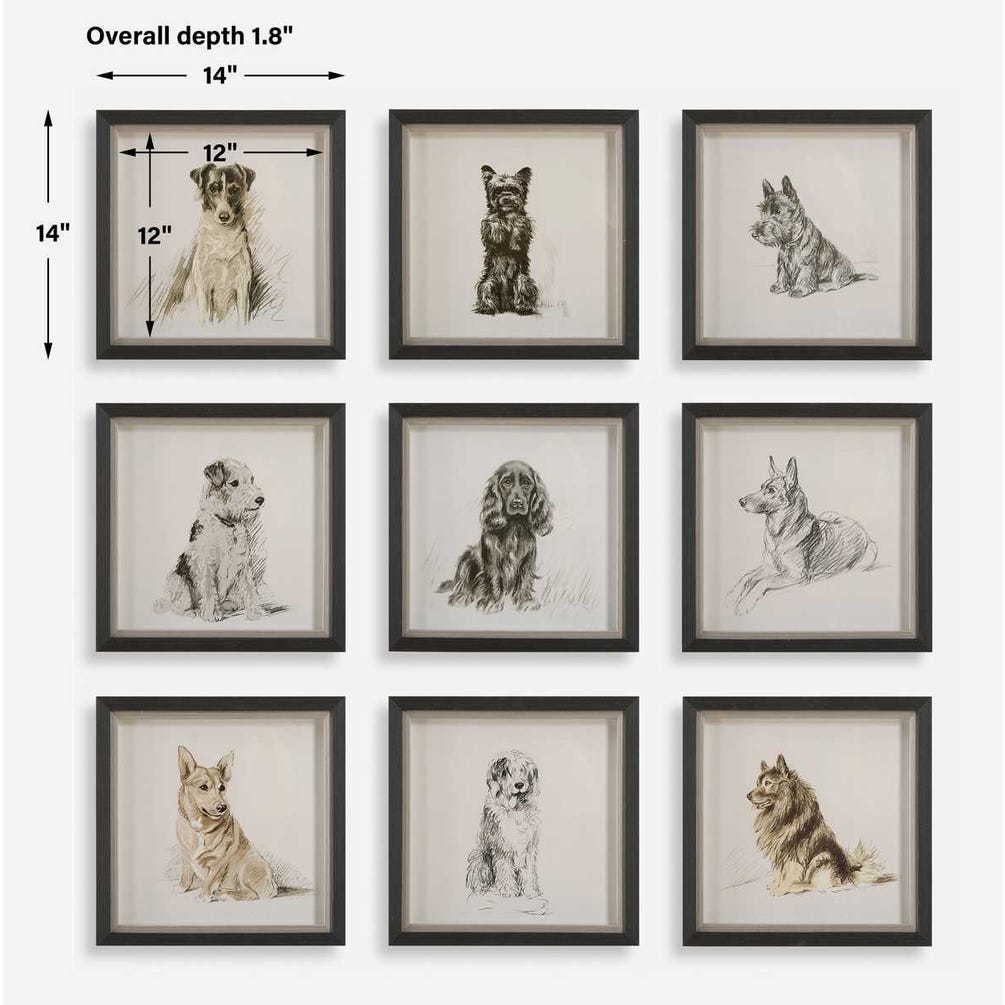 Nora Roberts once said “Everything I know I learned from dogs.” This special tribute to some of our favorite loyal companions will warm hearts. The sketches are surrounded by a classic black wood grain frame with complimenting silver rabbet and placed under protective glass.