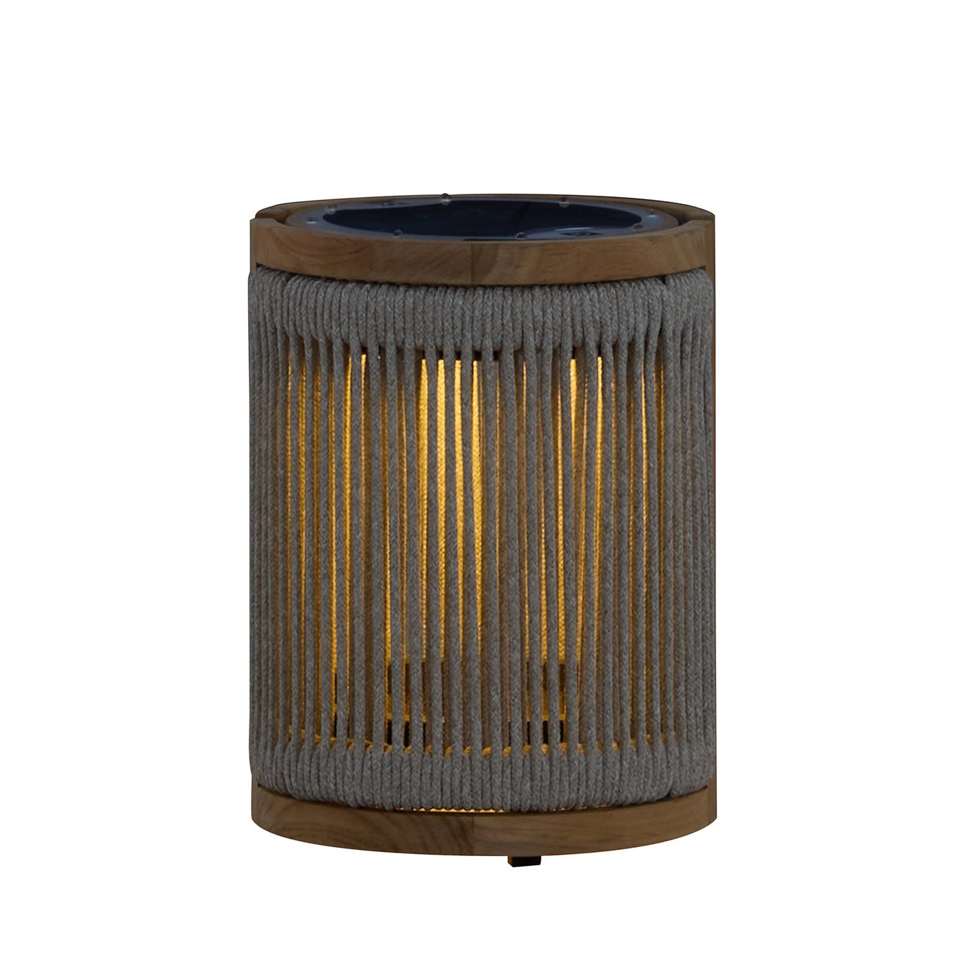 Compact and versatile, the Avalon Small Lantern adds soft, flickering light and artisanal texture to any outdoor setting. Wrapped in durable olefin rope with a solid teak top and base, it reflects the craftsmanship and coastal appeal of the Avalon Collection. The built-in LED lighting module sits neatly in the lantern and is removable for charging, offering solar and main power options. Enjoy multiple brightness settings and easy control by touch or remote—no flames, no glass, no hassle. Ideal for layering on tables, ledges, or steps, the Avalon Small Lantern can be mixed and matched with other sizes for a dynamic outdoor lighting display.