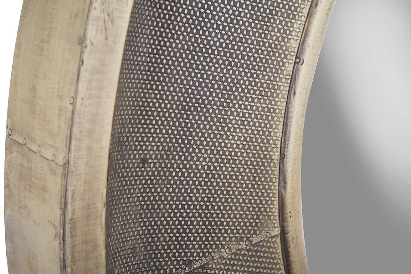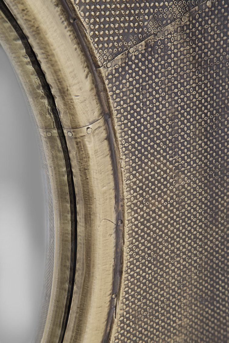 The Lux Large Porthole Mirror is a bold statement piece with a vintage-industrial aesthetic. Its circular design features an antique brass frame with a speckled texture, evoking old-world charm and character. Perfect for adding depth and style to any space, this mirror combines timeless appeal with an industrial edge.