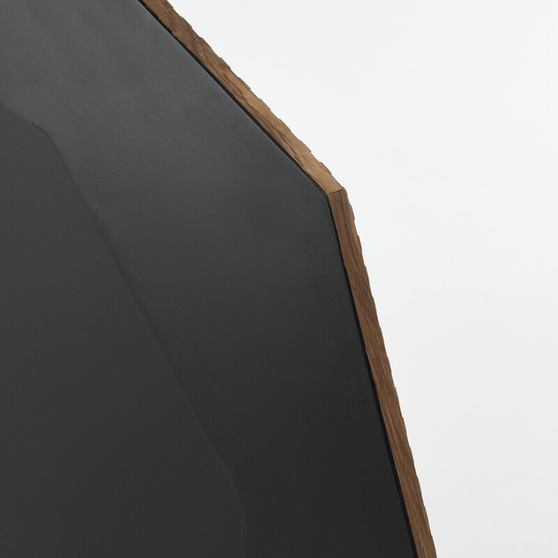 The Santa Barbara Round Mirror features oak veneer with hand-carved details and a warm honey finish. Its mid-century modern design and chic vintage appeal make it a striking piece that adds timeless charm to any room. The unique craftsmanship enhances your space with a sophisticated, yet inviting, atmosphere, making it an ideal addition to both modern and classic interiors.