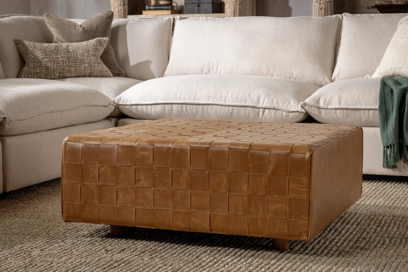Add a touch of sophistication with the Aristo Leather Square Ottoman. Its rich, hand-woven leather texture brings warmth and style, serving as a versatile piece for seating, resting your feet, or showcasing your favorite décor.