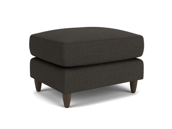 An ottoman completes the room. A Danbury Leather Ottoman does that and so much more. Completely customized to your liking, this ottoman complements your sofa or sectional or adds a playful contrast that ties it all together. Webbed seating construction means you can comfortably settle your feet or a decorative tray, or even use it as a seat. A tufted top and tall, tapered wood legs in a walnut finish give it a clean look. Choose your leather from a range of possibilities.