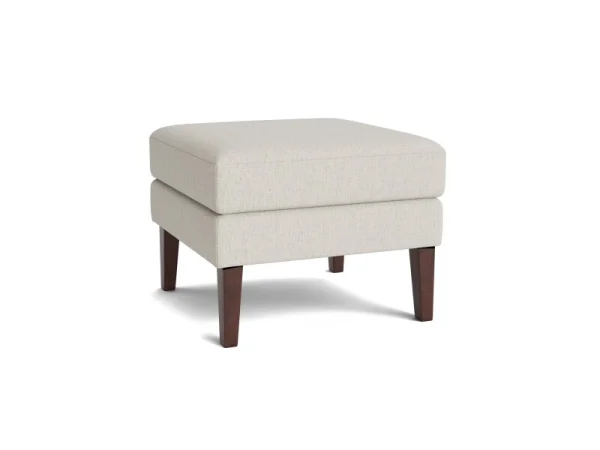 An ottoman completes the room. A Danbury Leather Ottoman does that and so much more. Completely customized to your liking, this ottoman complements your sofa or sectional or adds a playful contrast that ties it all together. Webbed seating construction means you can comfortably settle your feet or a decorative tray, or even use it as a seat. A tufted top and tall, tapered wood legs in a walnut finish give it a clean look. Choose your leather from a range of possibilities.