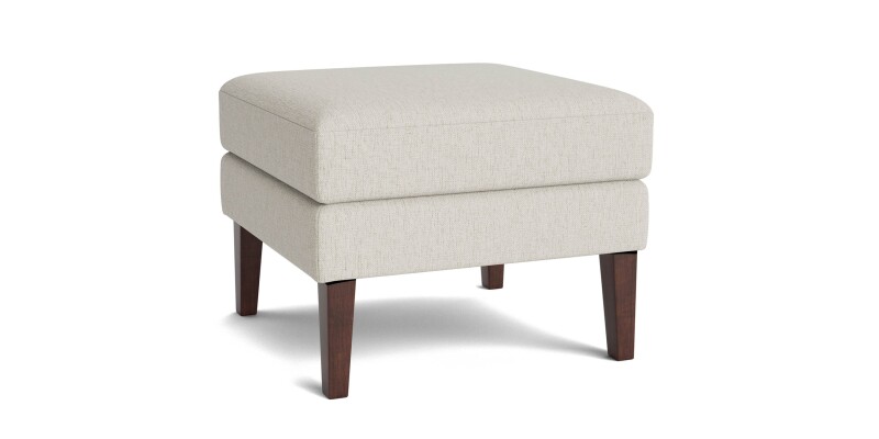 An ottoman completes the room. A Danbury Square Ottoman does that and so much more. Completely customized to your liking, this ottoman complements your sofa or sectional or adds a playful contrast that ties it all together. Webbed seating construction means you can comfortably settle your feet or a decorative tray, or even use it as a seat. A smooth, top-stitched top and tall, tapered wood legs in a walnut finish give it a clean look. Choose your fabric from a range of possibilities.