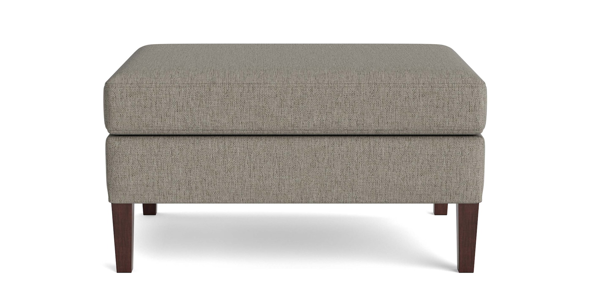 An ottoman completes the room. A Dover Rectangle Ottoman does that and so much more. Completely customized to your liking, this ottoman complements your sofa or sectional or adds a playful contrast that ties it all together. Webbed seating construction means you can comfortably settle your feet or a decorative tray, or even use it as a seat. A smooth, top-stitched top and tall, tapered wood legs in a walnut finish give it a clean look. Choose your fabric from a range of possibilities.