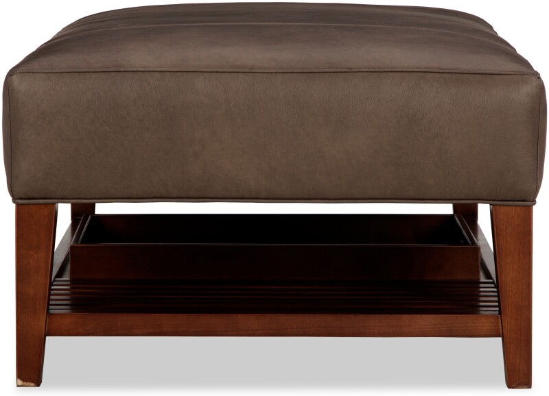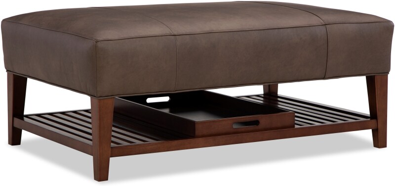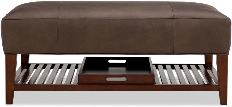 You’ll love this leather cocktail ottoman for it’s looks, but you’ll really enjoy its functional side too. It features a plush top, slatted wood base, and handsome transitional lines. But hidden underneath is the real prize- a storage tray – perfect for snacks, beverages, or even a game. Use it anytime or all the time!