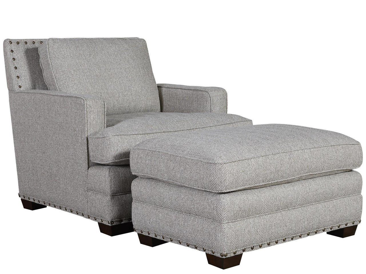 Delicately trimmed with nail heads and finished in upholstered performance fabric, the Riley Ottoman makes a plush addition to any living room or home office.