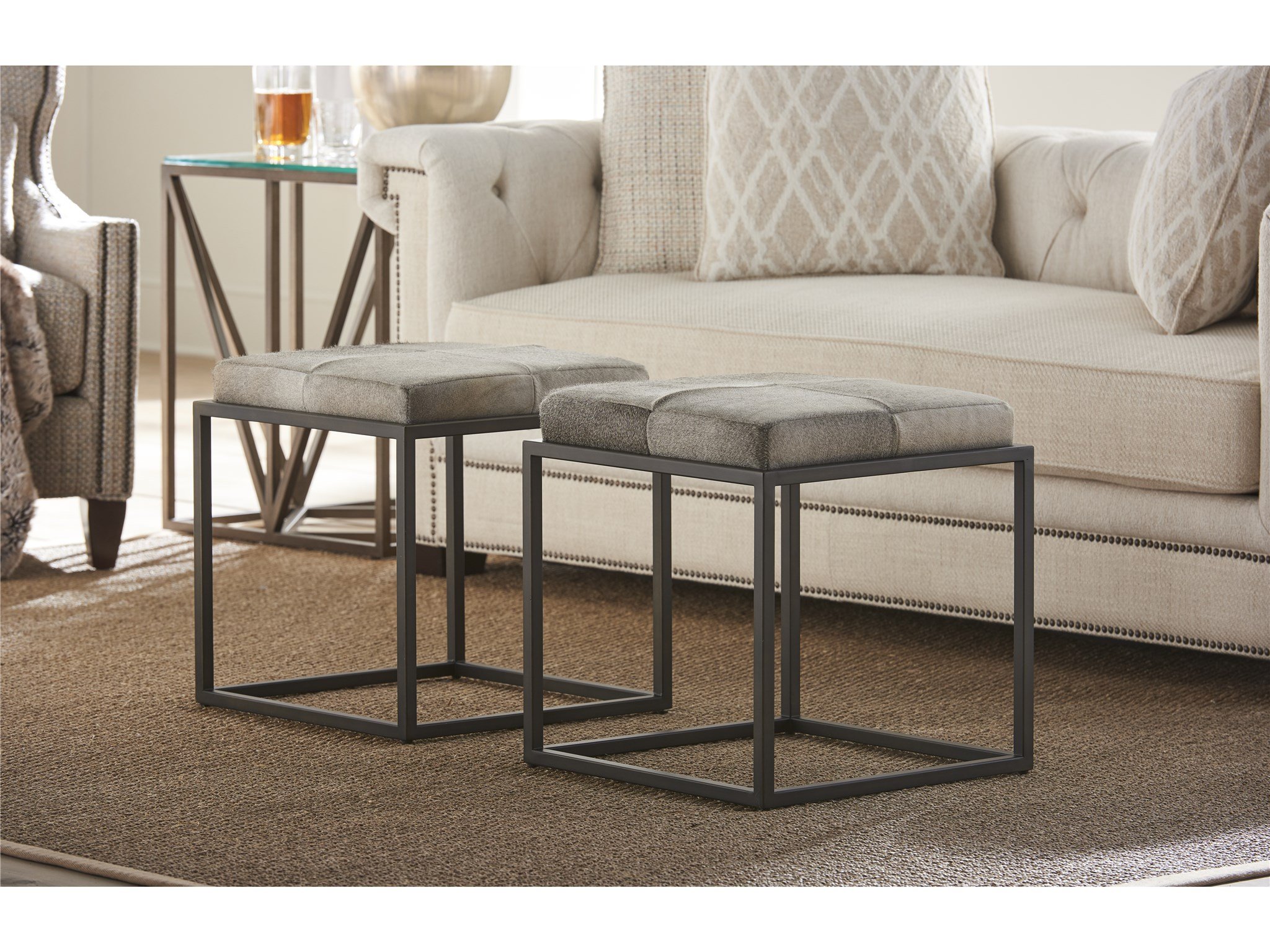 The Safari Ottoman is a spatially conscious comfort piece built with a finely-crafted square silhouette and finished in a luxuriously textured grey hair-on-hide fabric.