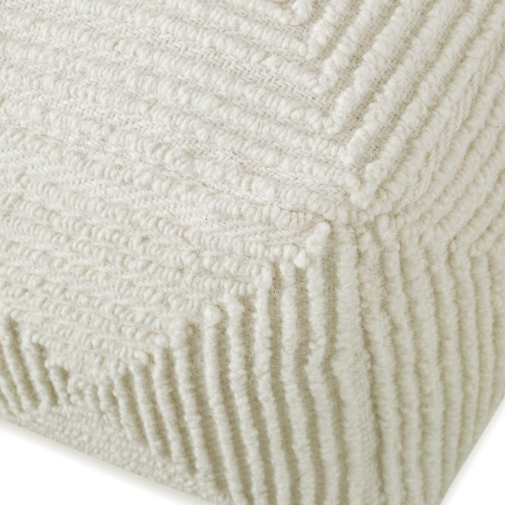 Handwoven from 100% wool in soft ivory, accented by subtle geometric inspired patterns. Perfectly oversized to use as a footrest or an extra place to sit.