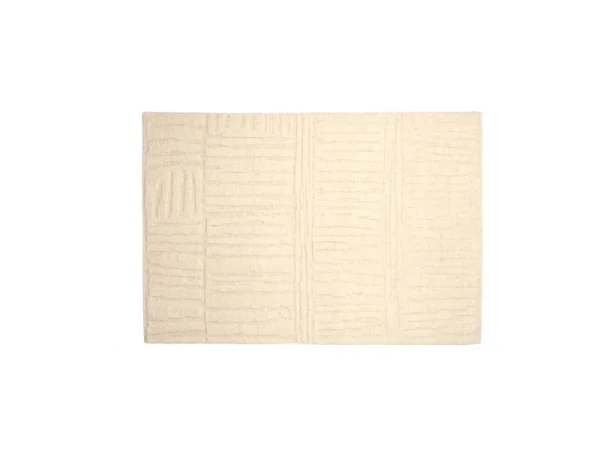 Hand-knotted area rug made from 100% undyed New Zealand wool with a deep, plush pile and subtle geometric patterns for natural warmth and texture.