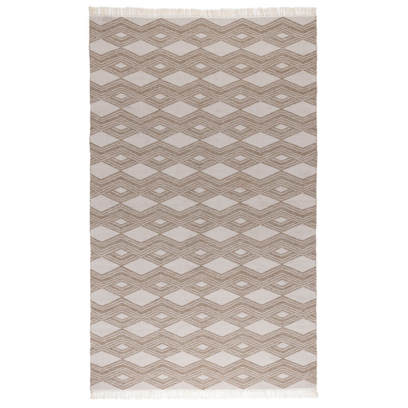 With the classic appeal of a geometric diamond pattern, this rug grounds any space with a timeless look that transcends any style. Neutral hues effortlessly complement any color scheme with warmth and versatility. Handwoven for an artisanal look, this polypropylene rug suits indoor and outdoor spaces with long lasting beauty and durability.