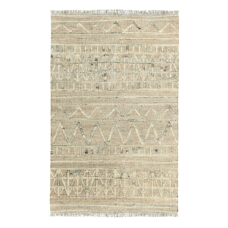 Elevate your room with this rug featuring muted hues of jute, handwoven into simple Moroccan pattern. Fringe and hand distressing add texture and visual interest while creating an inviting atmosphere.