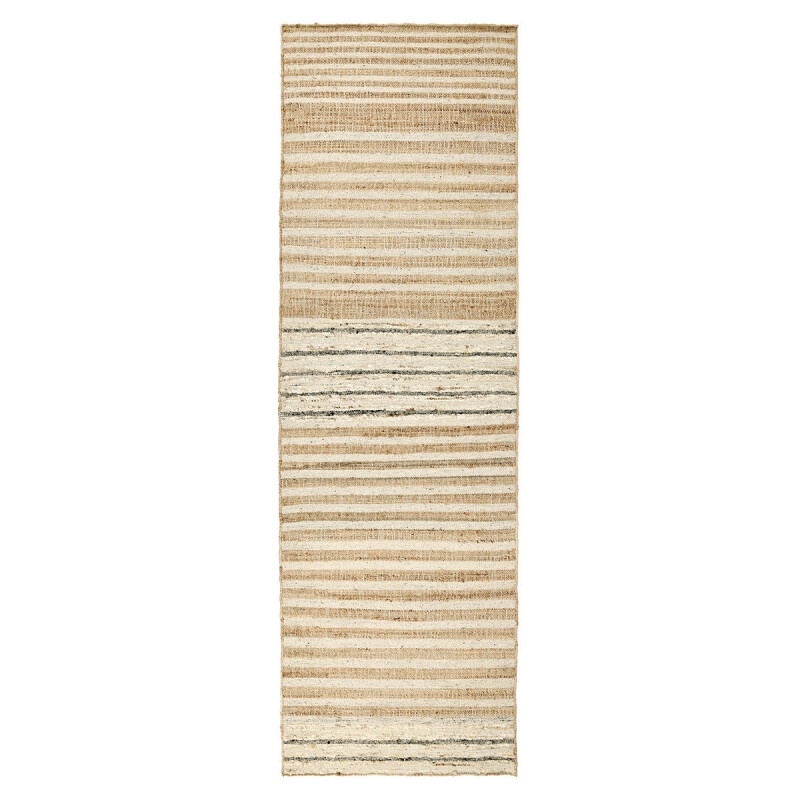 Showcasing craftsmanship and artisanal beauty, this rug evokes images of seaside ports and towns. The cotton, jute, and wool blend make this rug a sustainable choice while its natural hues and casual striped pattern enhances any style.