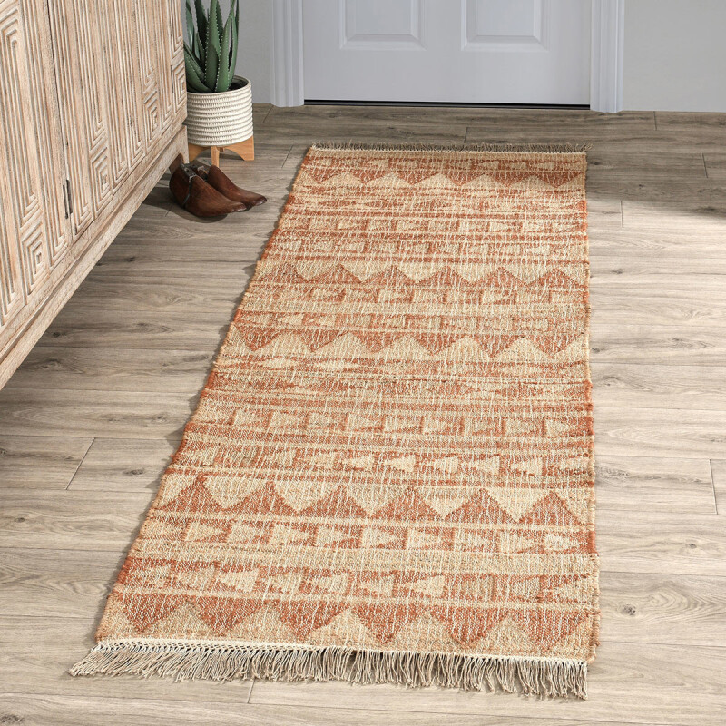 Perfect by itself or layered with other rug textures, our hand-woven Solana rug is the star of the room. Featuring a modern tribal design and fringe at both ends, this rug will add irresistible charm to any space.