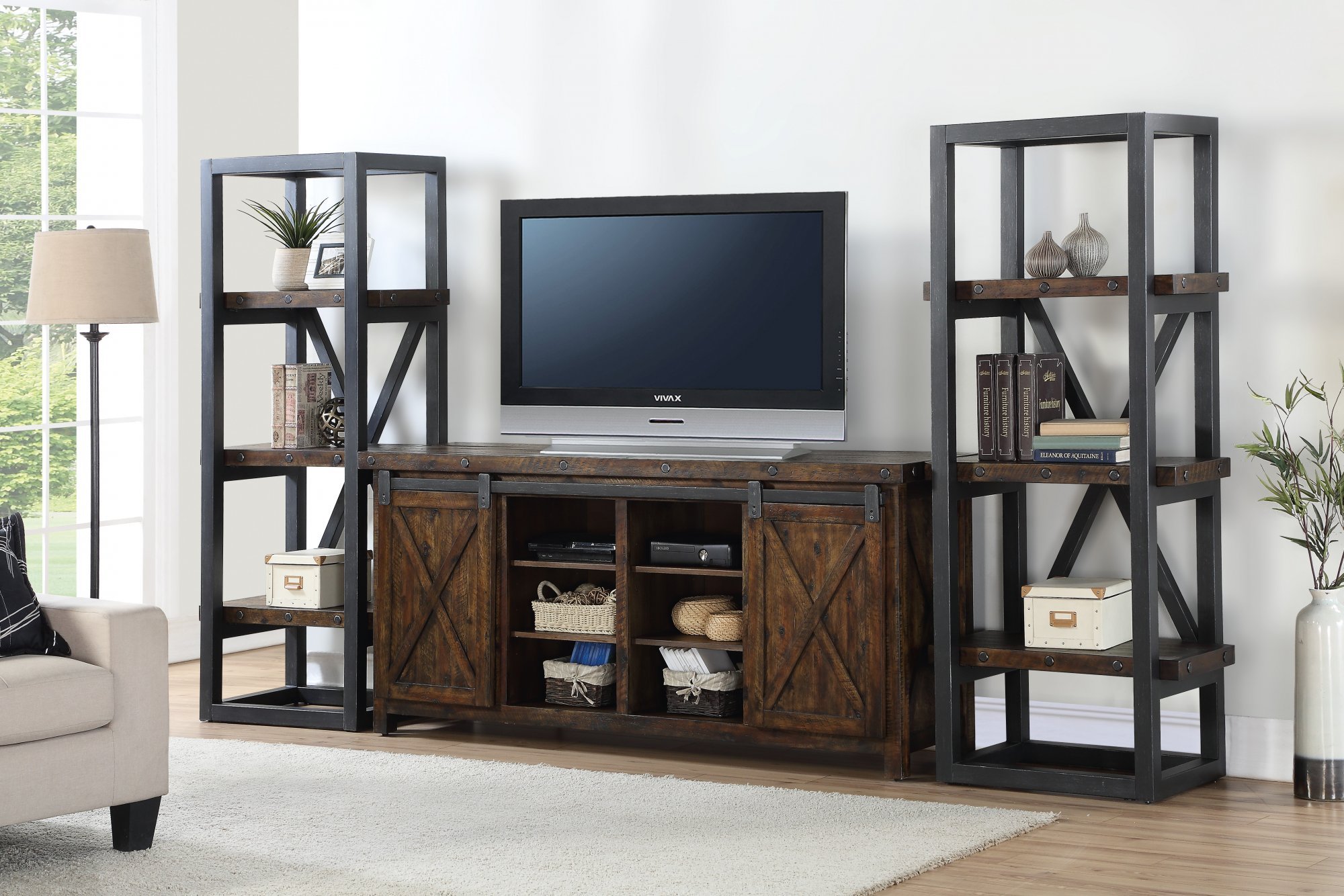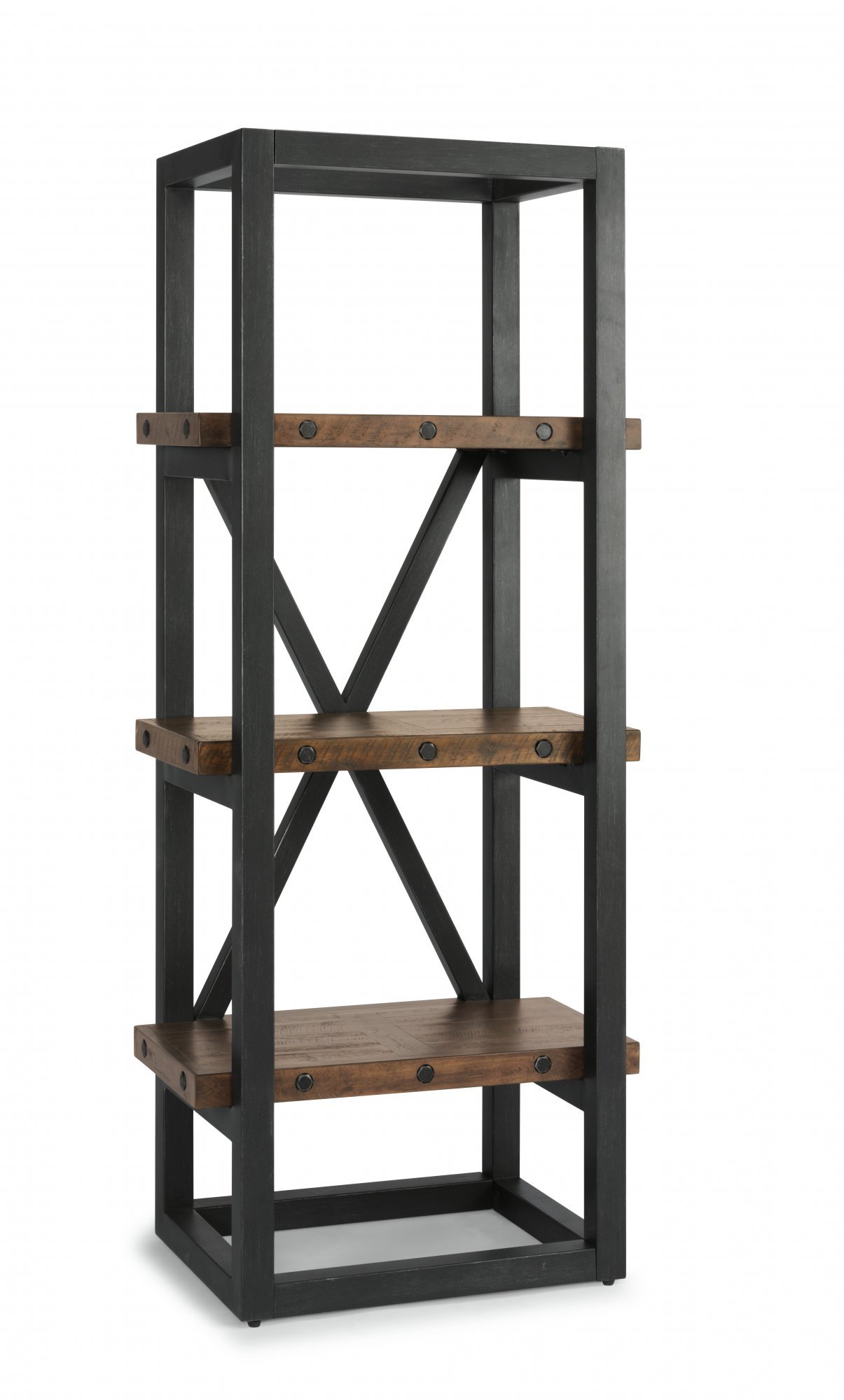 Drawing inspiration from vintage workbenches, the Carpenter side pier is constructed of reclaimed wood planks and hand-worked metal frames. Exposed bolt heads underscore the aged, oiled finish that resembles an industrial steel framework. Whether on its own or used to add additional storage to coordinating pieces, this side pier adds character and personality to any room.