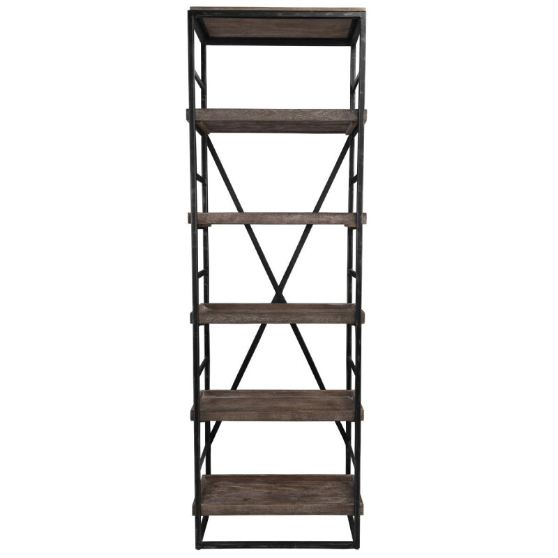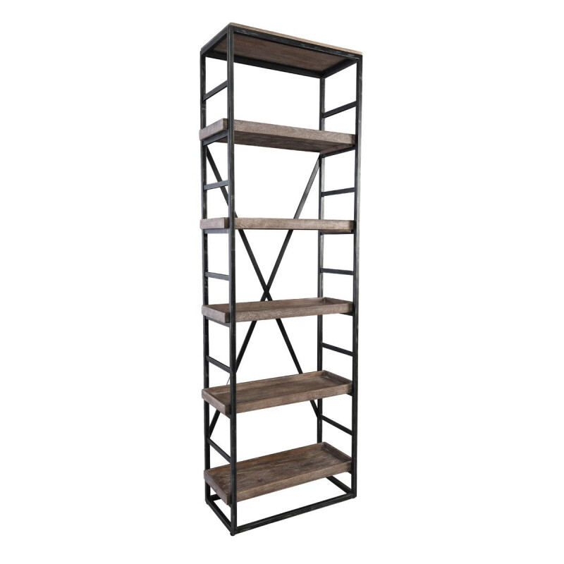 The Evan Bookshelf offers an industrial charm with its sturdy iron frame and mango wood shelves. Designed for both style and functionality, this tall shelving unit provides ample storage and display space for books, decor, and more. Its sleek lines and rustic materials make it a versatile piece for any modern or eclectic interior.