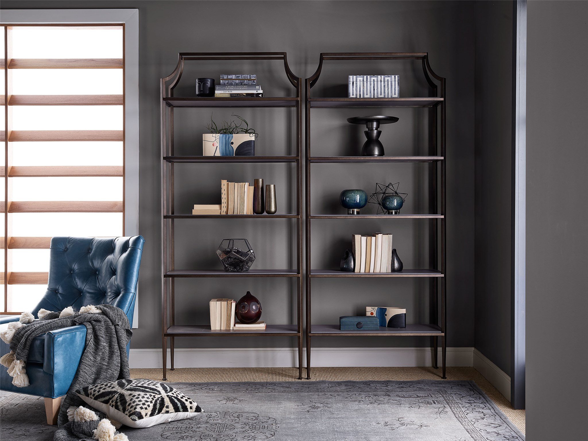 Exuding a refined combination of textures and materials, the Holt Etagere promises a style upgrade to any living space with five open-air shelves encased in a chic metal frame and subtle curved detailing.