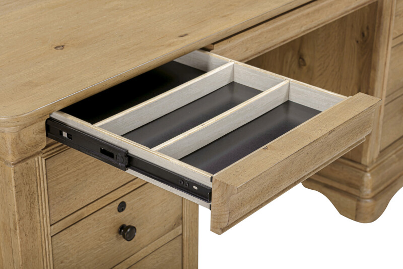 Drop Front Keyboard Drawer | Keep your desk workspace clean and organized with a convenient pullout keyboard drawer. You have the choice to use for a keyboard or storage. |