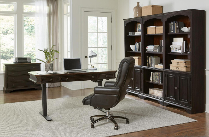Hampton offers a relaxed traditional design with a touch of modern. The dual tone black cherry finish offers contrasting tops and backs with beautiful antique gunmetal hardware making this collection an easy choice for your workspace.