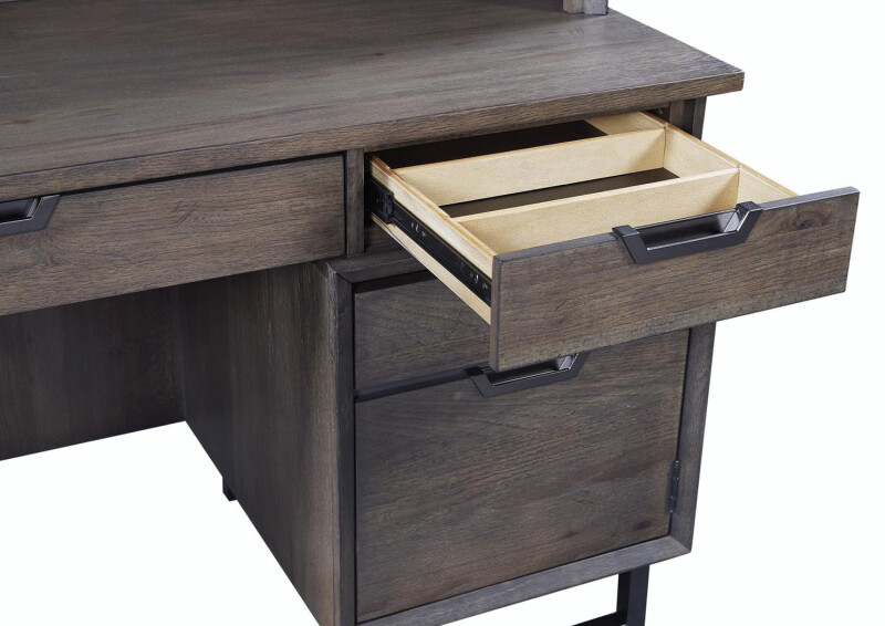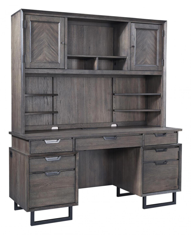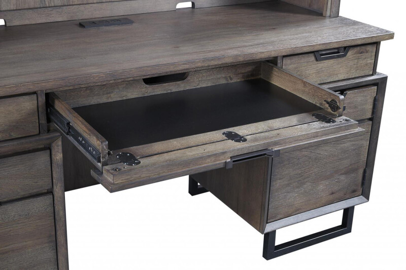 Offering a relaxed contemporary look from the complex organic finish to the contrasting metal accents and hardware. Functional features make this an easy choice for your workspaces.