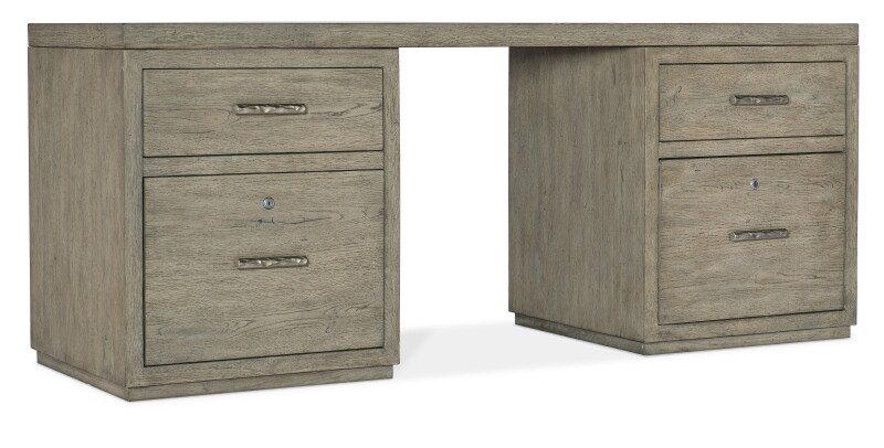 Capturing the essence of nature’s organic color palette on a clean-lined, simple silhouette, the Linville Falls Desk is crafted of Oak Veneers with a soft smoked gray Mink finish. The 72-inch wide top is flanked on each end with two small files. Each file has a top utility drawer and a lower locking file drawer with pendaflex filing system. The desk is fully finished on the back so it can be floated in a room.