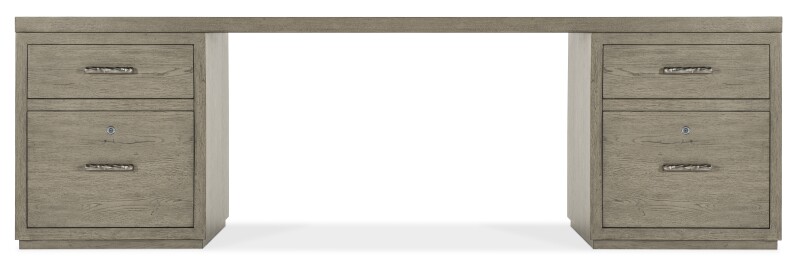Capturing the essence of nature’s organic color palette on a clean-lined, simple silhouette, the Linville Falls Desk is crafted of Oak Veneers with a soft smoked gray Mink finish. The expansive 96-inch wide top is flanked on each end with two small files. Each file has a top utility drawer and a lower locking file drawer with pendaflex filing system. The desk is fully finished on the back so it can be floated in a room.