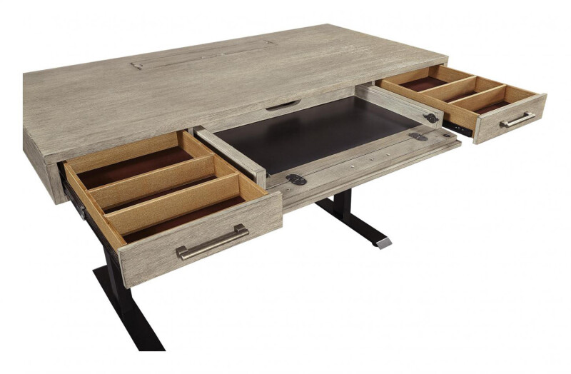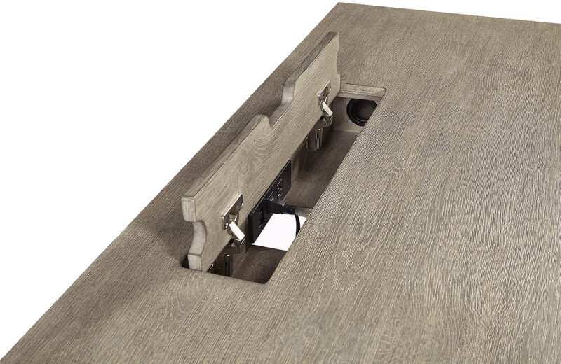 | Charging Compartment | The charging compartment is conveniently located on the top of the desk. Contains 2 A/C and USB charging ports and features soft close hinges to keep fingers safe. |