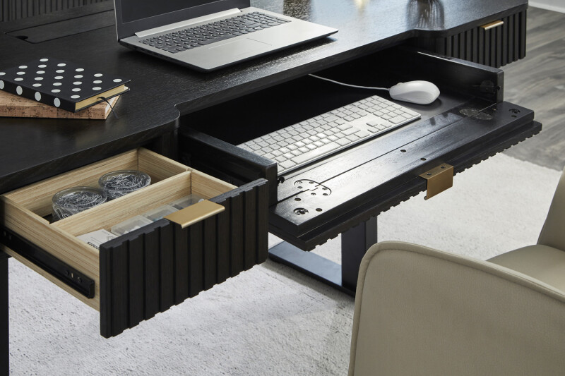 Drop Front Keyboard Drawer | Keep your desk workspace clean and organized with a convenient pullout keyboard drawer. You have the choice to use for a keyboard or storage. |