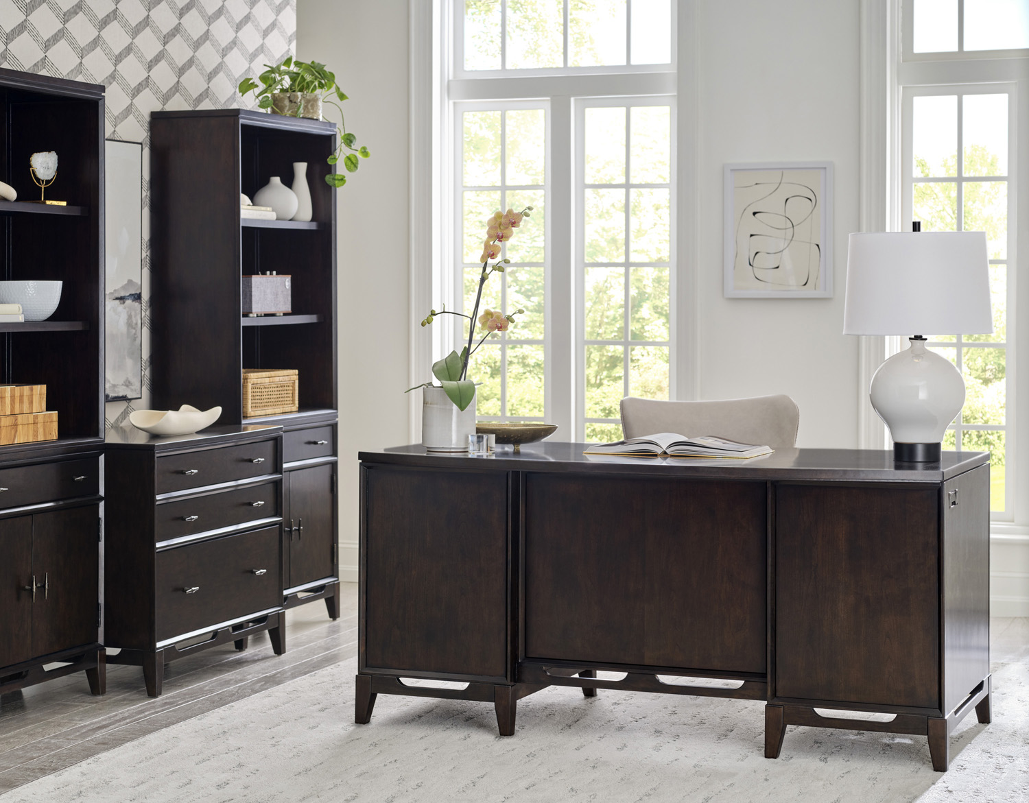 Sutton’s subtle curves and straight lines are both beautiful and functional. The collection has a deep French Roast finish paired with burnished bronze finished hardware in a transitional design that begs to be admired.