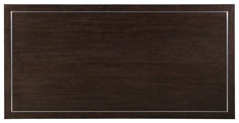 Add stylish work-from-home bandwidth to any space with the House Blend Executive Desk with a sleek combination of the Dark Roast finish over Quartered Ash Veneers, silver metal trim and polished stainless bar pulls. The bold silhouette has 7 drawers, with the top left and right drawers on full extension metal ball-bearing slides with removable divider inserts, one removable writing slide and one removable pencil drop-in that can be used on either side. Bottom drawers are locking file drawers with Pendaflex filing system and full extension metal ball-bearing slides. The center drawer has a drop-front for keyboard use. Finished on all sides.