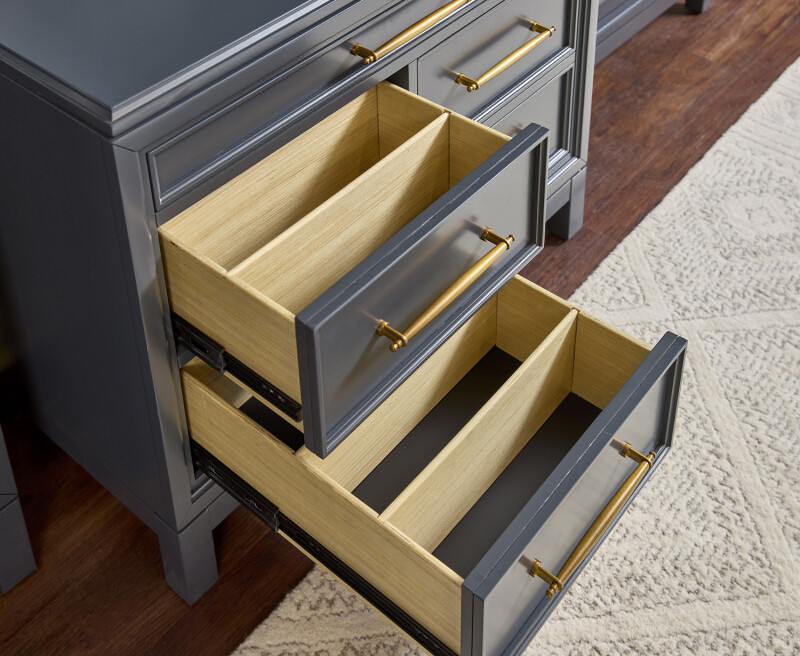 Alexander offers affordable luxury and opulent style with a Midnight finish and generously sized Champagne Bronze finish hardware. Nothing was spared when it comes to the quality, design and special features on this transitional style collection.