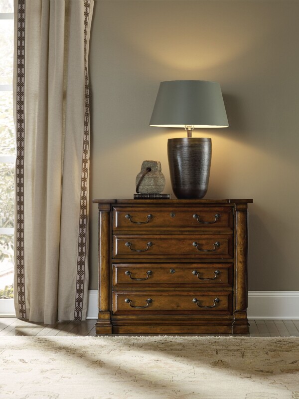 In a warm, chestnut-colored rustic finish over figured Alder Veneers accented by classic handle hardware in an aged copper finish, the Tynecastle Lateral File projects a Hunt Country vibe. There are two locking file drawers with a pendaflex letter/legal filing system. Anti-tilt mechanism. Crafted of Poplar Solids and Figured Alder Veneers.